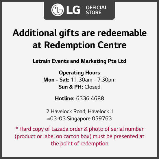 - *Kindly note that LG reserves the right to reject any redemption of purchased product if the redemption has exceed the dateline for redeem.