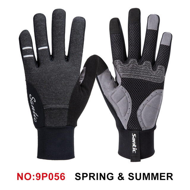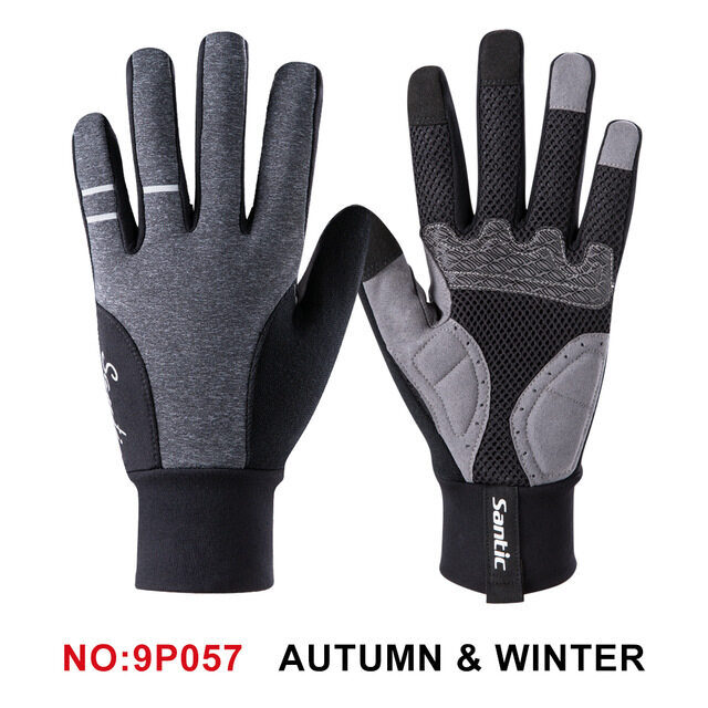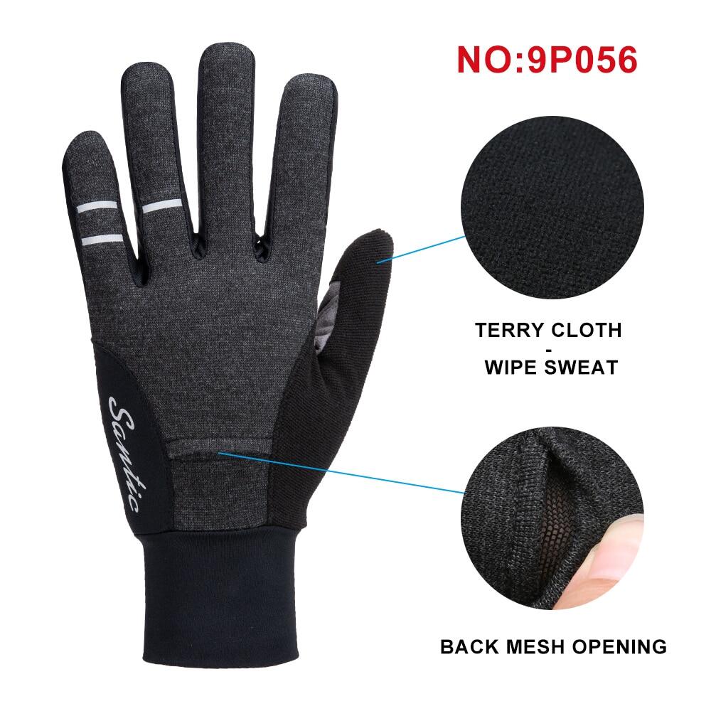 Santic Men Full Finger Cycling Gloves with Touch Function Shockproof Windproof Thermal Bike Bicycle Gloves 9P057/9P056