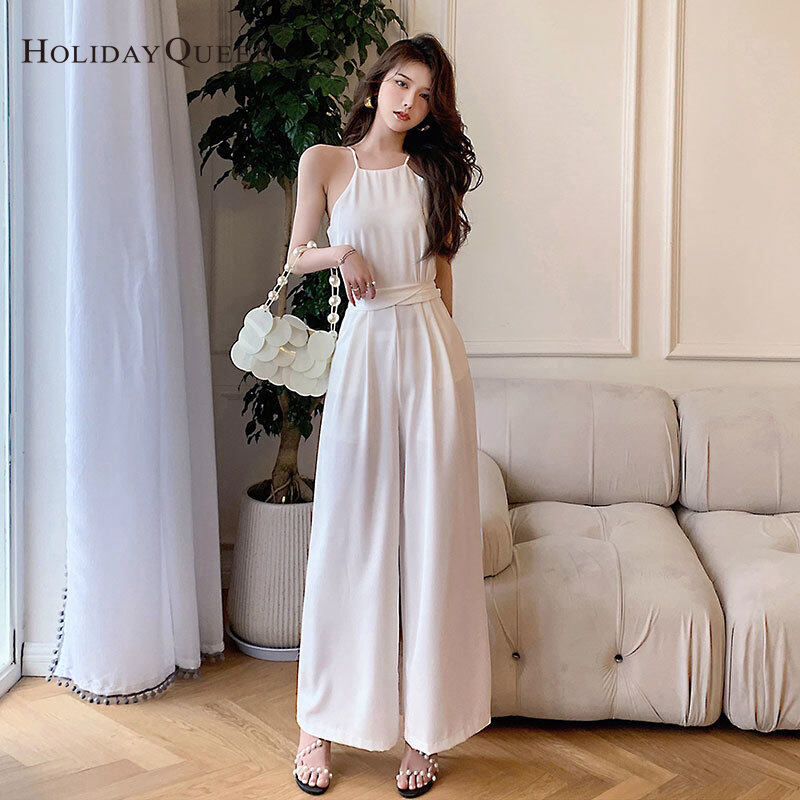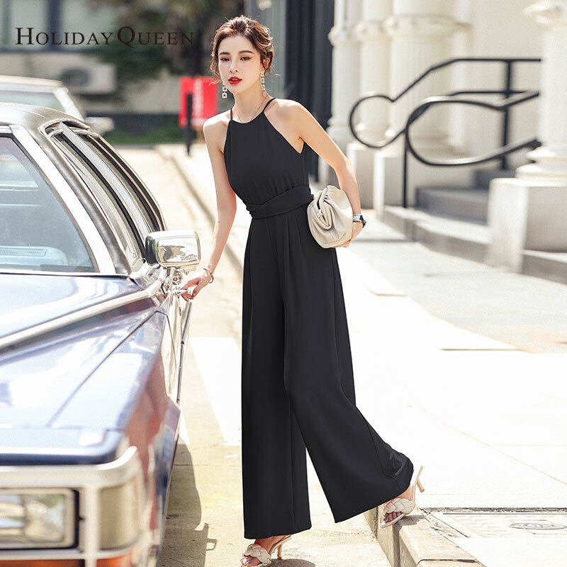 HolidayQueen Summer New Sling Lace-up High-waisted Wide-leg Thin Jumpsuit S M L XL Free Shipping HQ0514
