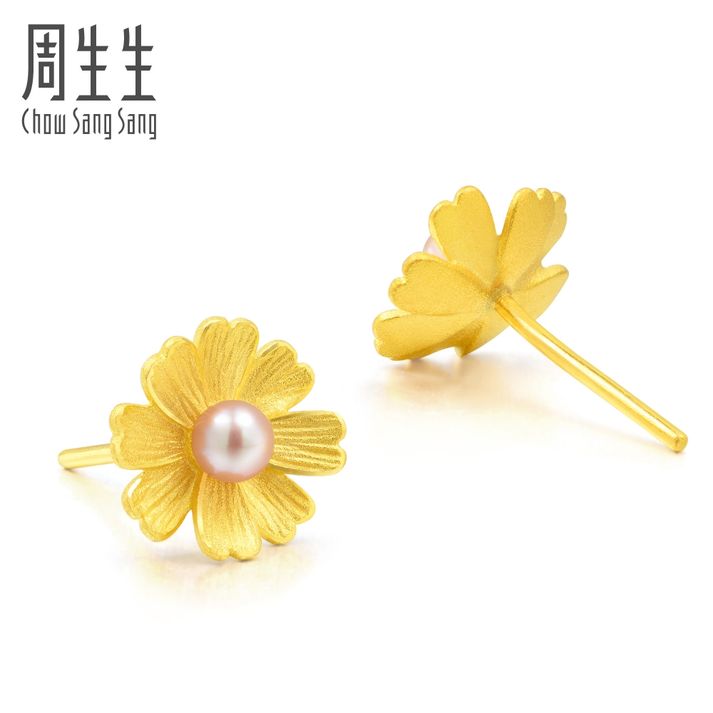 Chow Sang Sang 周生生 Cultural Blessings Blossom 999.9 24K Pure Gold Price-by-Weight Floral Gold Pearl Earrings 89694E #Spring