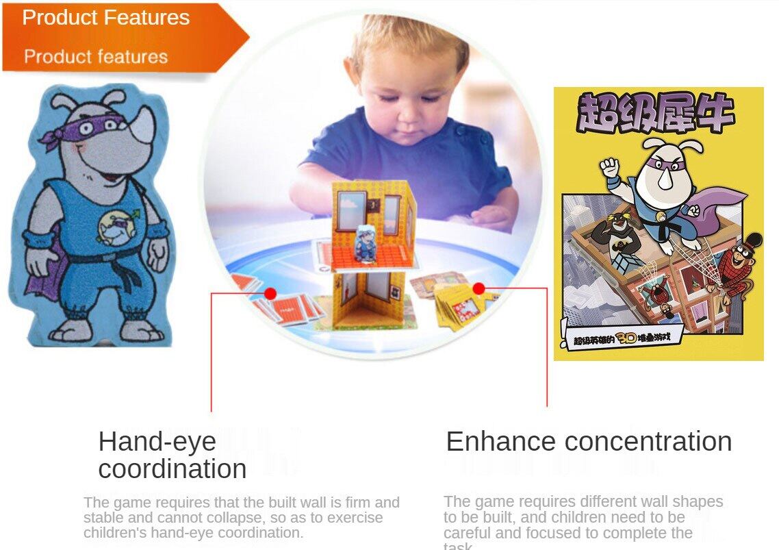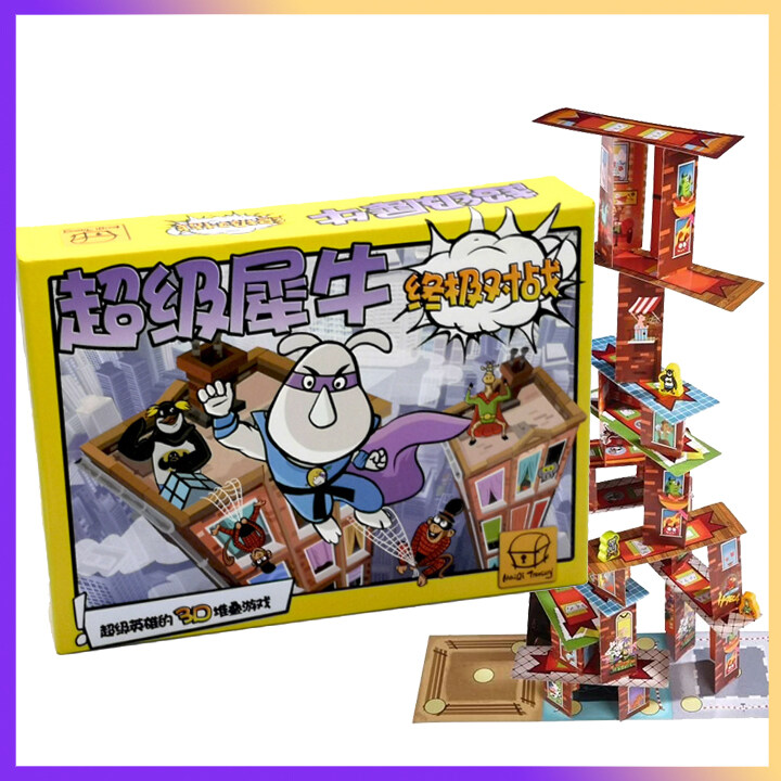 Rhino Hero | 3D Stacking Building Board Game Fun for Kids (Chinese Version) Parent-child Card Toys | Family Party for Boys Girls Gift ( Super Battle English Manual )