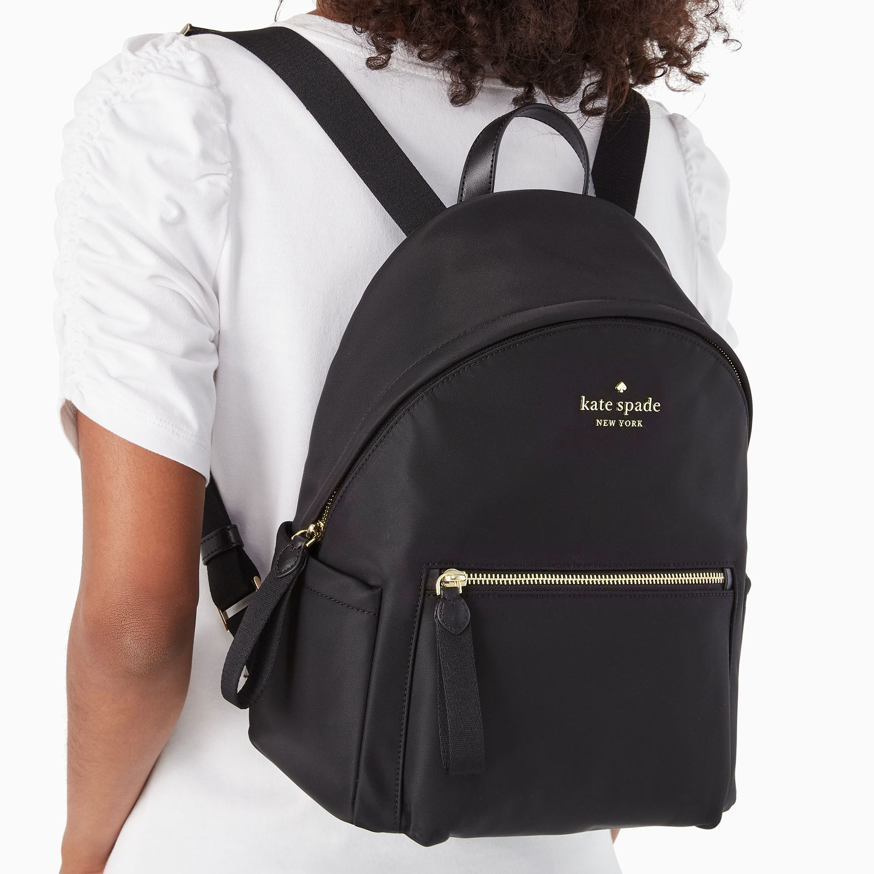 Kate Spade Backpack With Gift Paper Bag Chelsea Nylon Medium Backpack Black # WKR00556