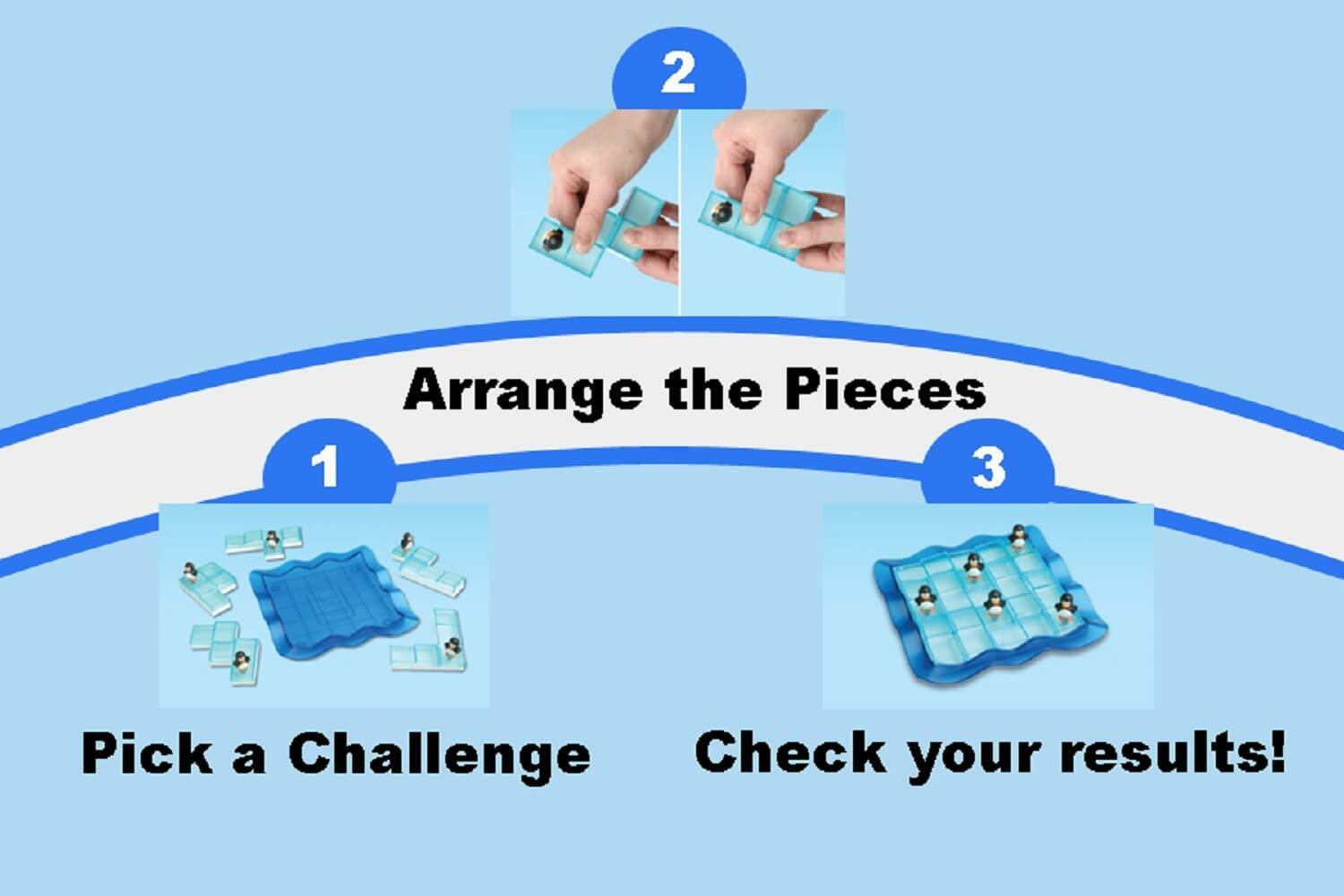 South Pole Penguins on Ice 60 Challenges - Fun Sliding Puzzle Board Game for Ages 5+ | Cognitive Toys for Kids | Children Birthday Gift for Boys Girls | Smart IQ Training