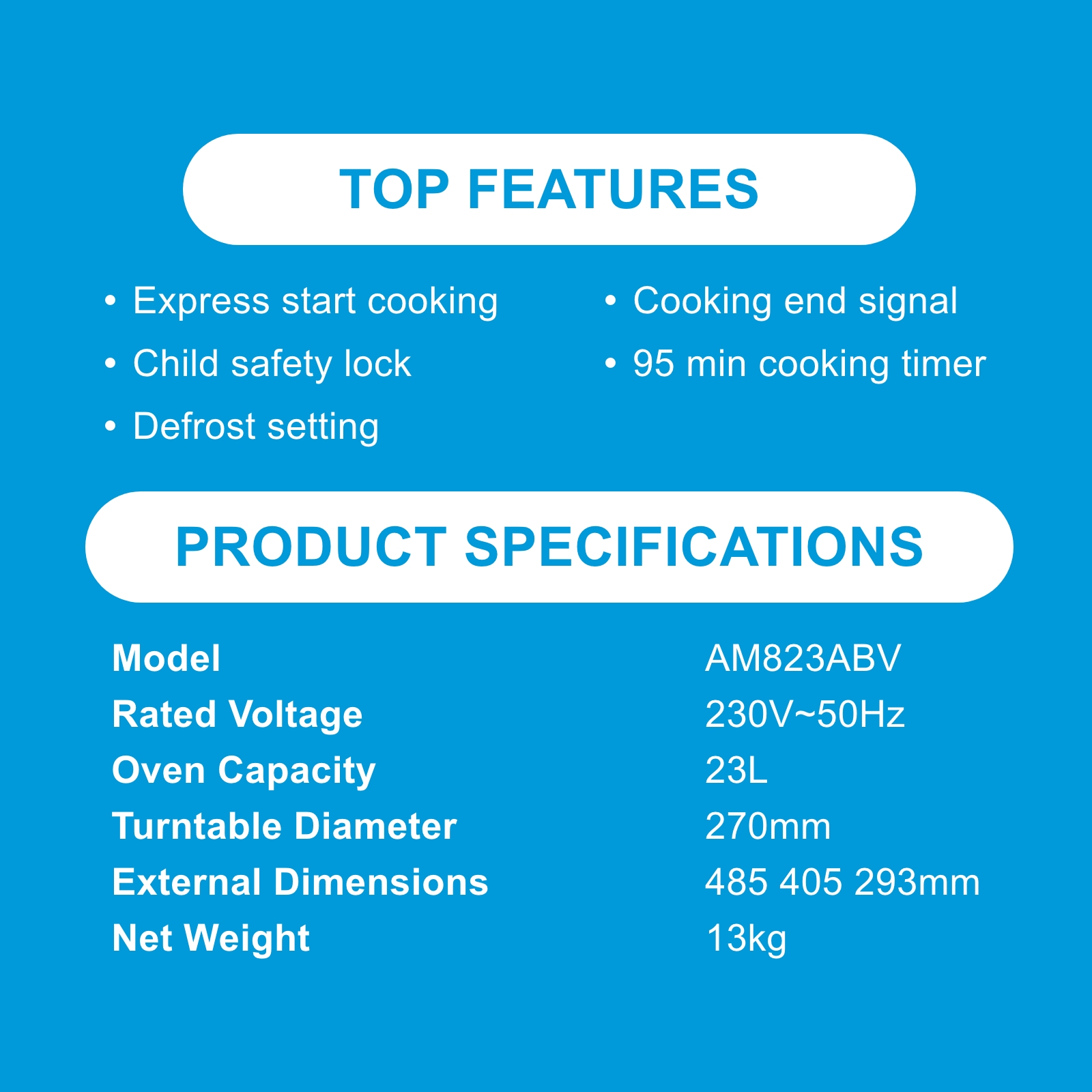 Midea AM823ABV Black Digital Microwave Oven, 23L