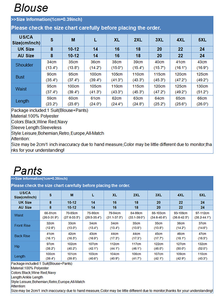 Package included:1 Suit(Blouse+Pants)