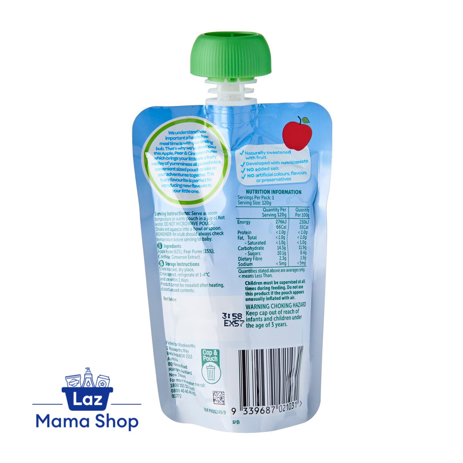 Apple Puree (62%), Pear Puree (35%), Cornflour, Cinnamon Extract.