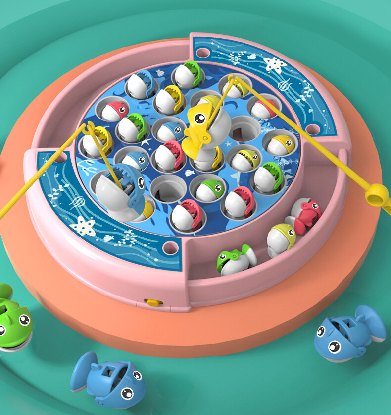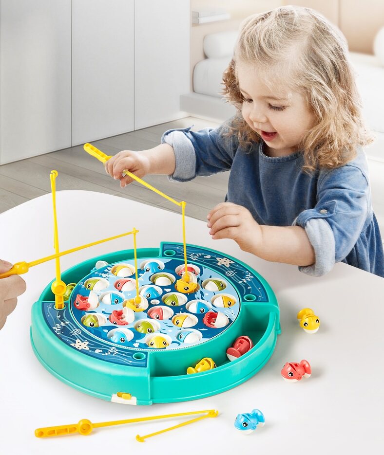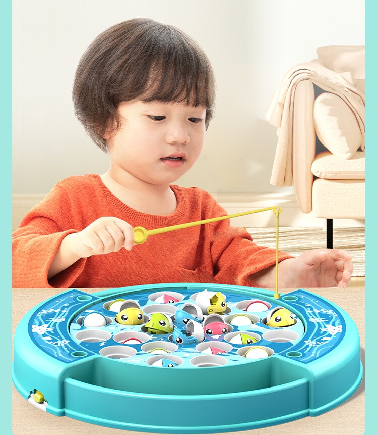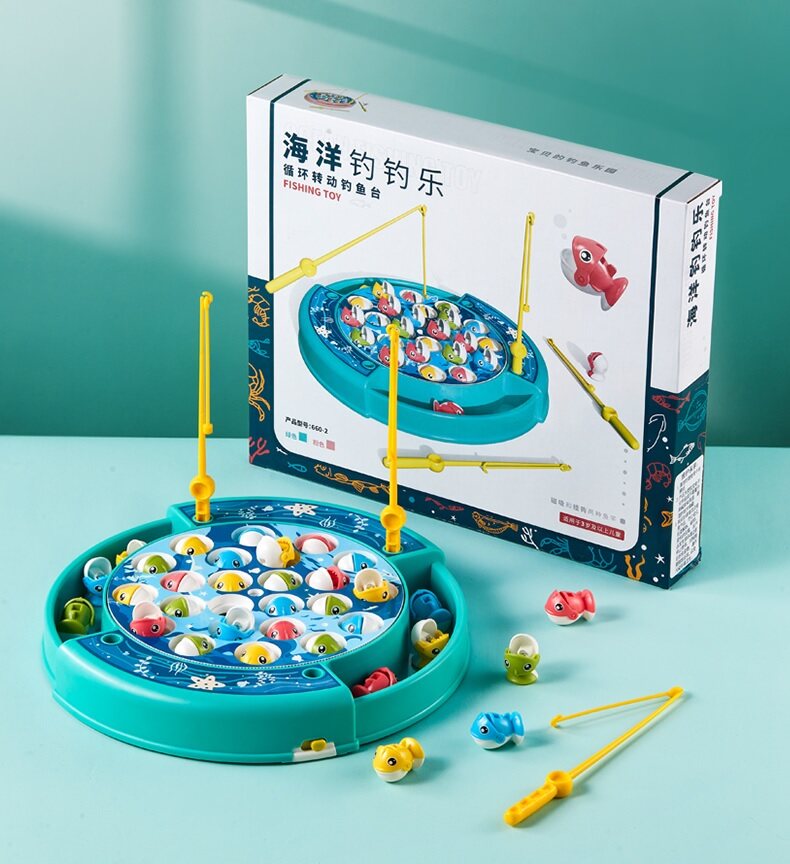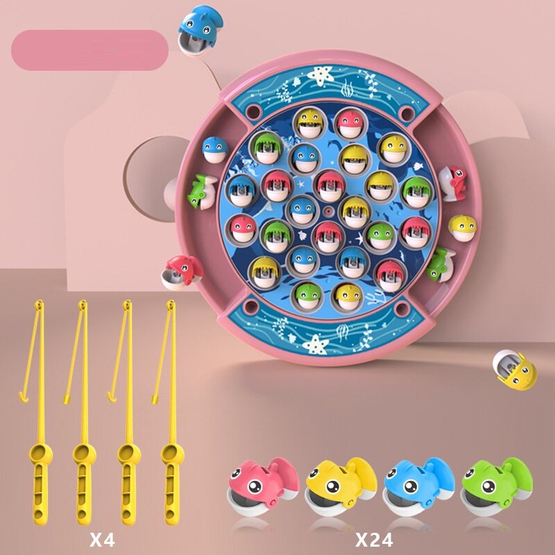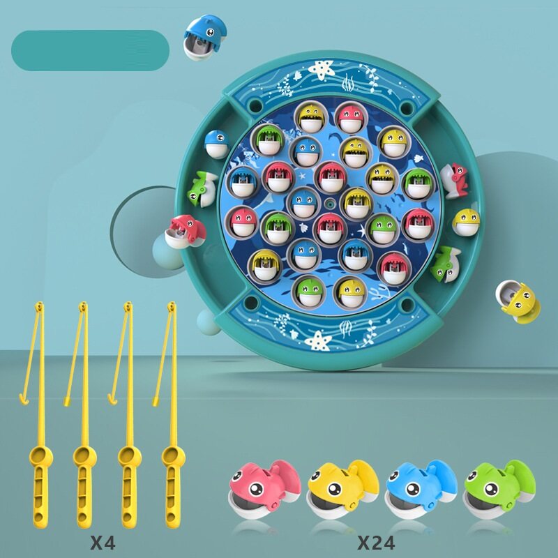 Let's Go Fishing ! Electric Rotating Fishing Game | with Music On/Off Switch for Quiet Play | Includes 24 Fish and 4 Poles | Gift Toy for Kids and Toddlers Age 3 4 5 6 7