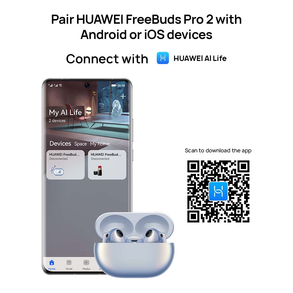 Description: HUAWEI FreeBuds Pro 2 is smart at its core. It consistently brings you the optimal sound quality, by seamlessly tuning audio to the real-time volume level, your ear canal structure, and how you're wearing them. It never lets your surroundings get in the way of your calls, music, and movies, employing a bone conduction microphone, three additional microphones, and the Huawei-exclusive deep neural network (DNN) noise cancellation algorithm. *Frequency range data comes from Huawei labs. During the tests, LDAC HD audio codec is used for Bluetooth connection. **This feature reduces the ambient noise and presents crystal clear sound to the other party during calls. Actual calling experience may vary depending on usage habits, environment factors, and individual app discrepancies. ***Only available when the connected two devices both support LDACTM. ****The pop-up feature is only supported on phones and tablets running EMUI 10 or later, and on selected PCs with PC Manager 13.0.2.300 or later.