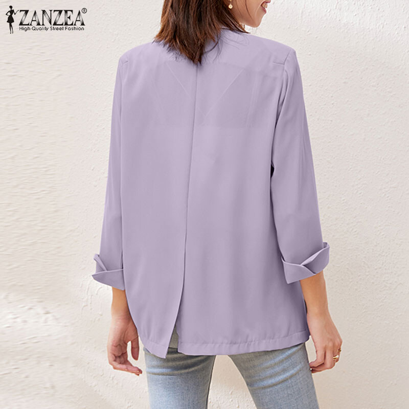 ZANZEA Korean Style Women Long Sleeve Workwear Casual Simple Lapel Blazer Suits Coats Jacket #11