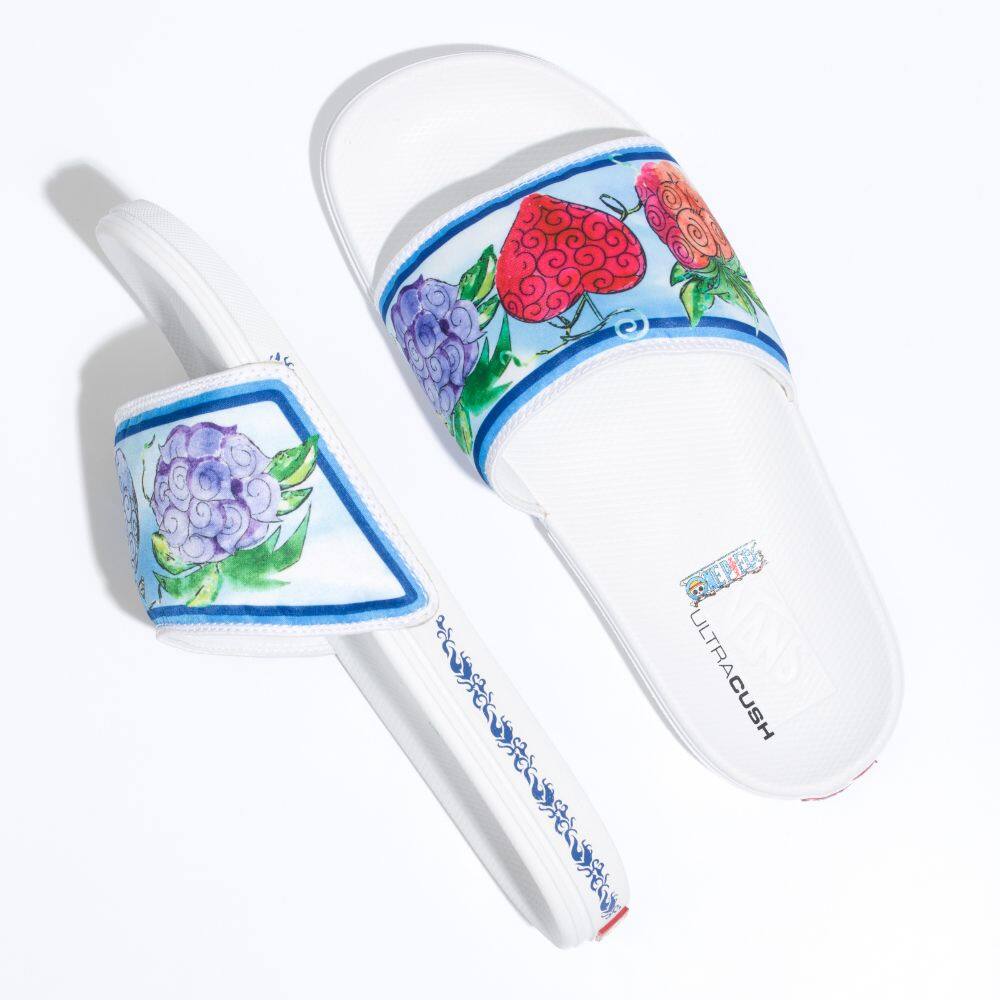 Featuring unique details inspired by the iconic Japanese anime, the Vans x One Piece La Costa Slide-On spotlights the story’s infamous Devil Fruit, which gives different superhuman powers to many of the characters while simultaneously making them incapable of swimming. Along with a soft blue aesthetic inspired by the open ocean, this iconic slide-on sandal lets you slip into comfort all day, every day.