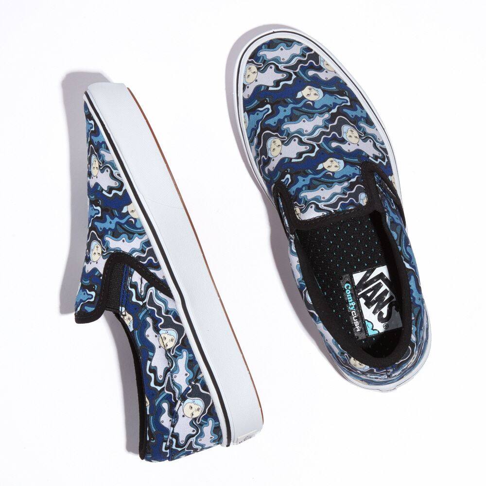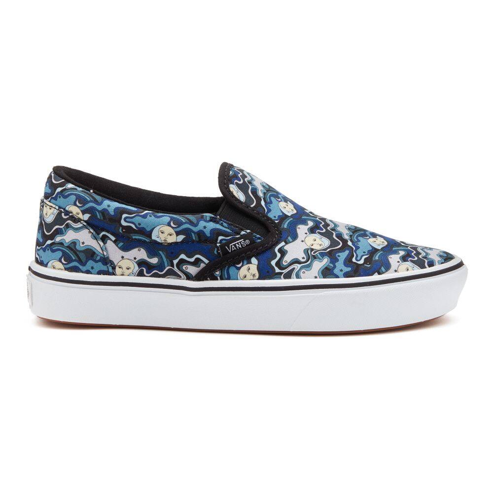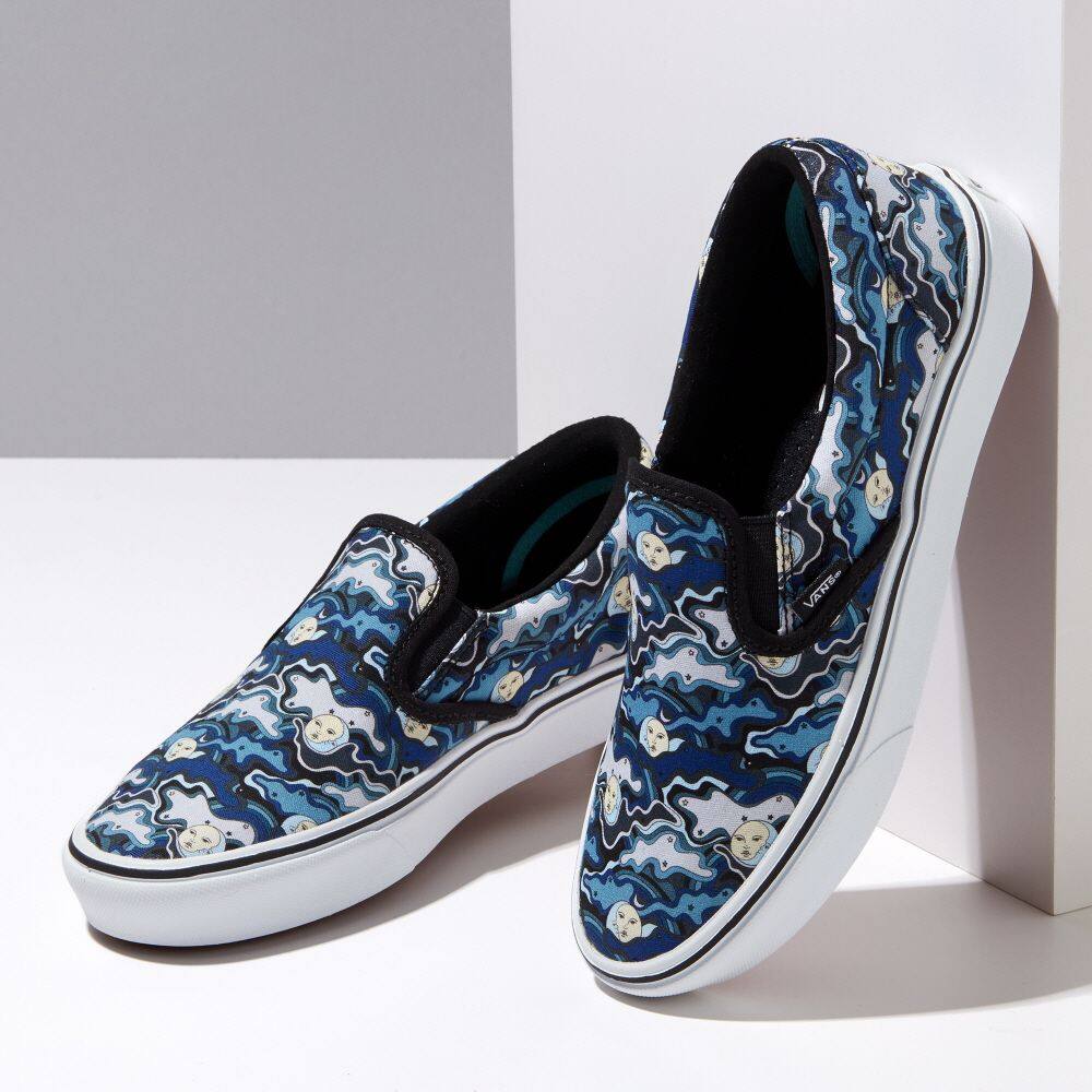 Vans has reinvigorated the classic Slip-On by introducing ComfyCush: a new softer, cushiony outsole that gives the ComfyCush Slip-On a first-class fit that feels like walking on a cloud. Newly constructed canvas uppers house simplified one-piece interiors with added arch support and new moisture-wicking lining throughout, resulting in a lightweight experience that assures youll Keep It Comfy at all times.