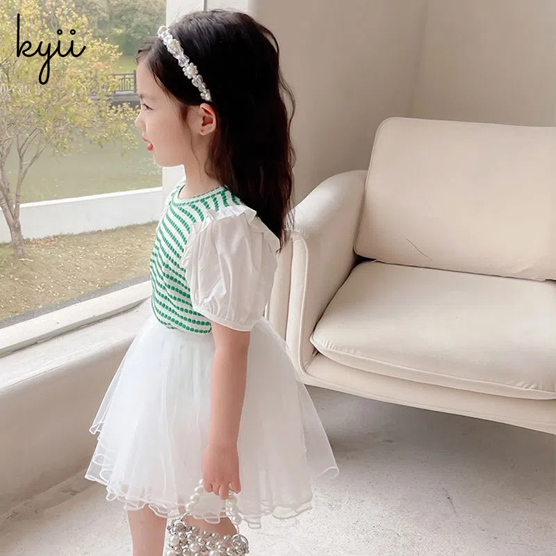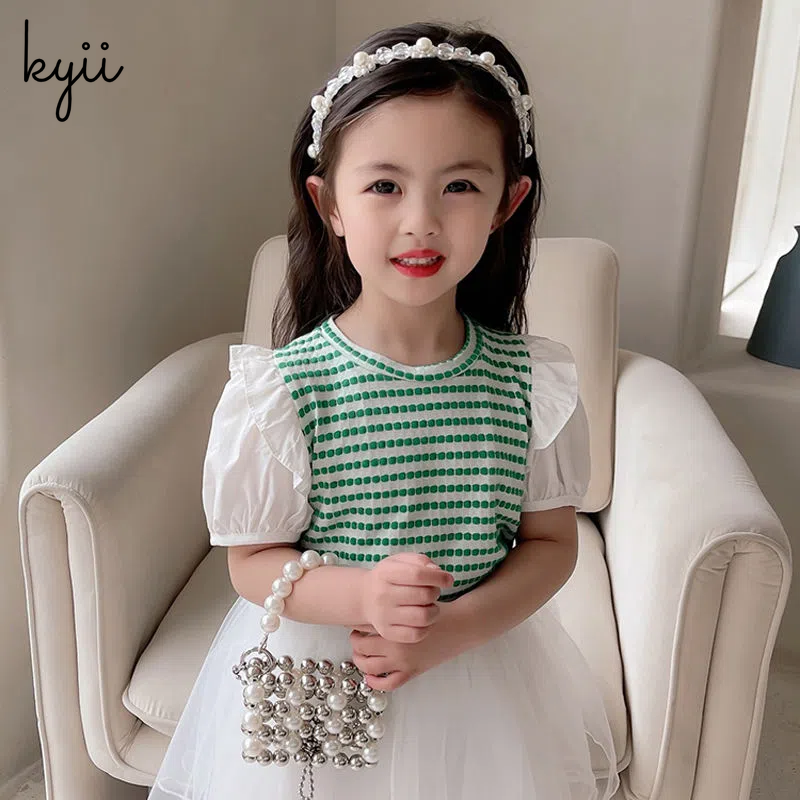 KYII Girl Summer children Korean Round-neck shirt Versatile short sleeve Top kyii0036