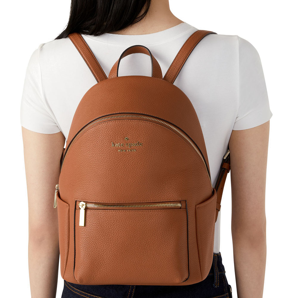 Kate Spade Backpack In Gift Box Leila Pebbled Leather Medium Dome Backpack Warm Gingerbread Brown # K8155