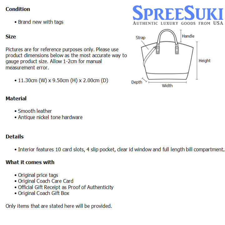 All our products are 100% authentic and purchased from Coach stores in USA. We are a reputable registered business in Singapore and it is illegal to sell counterfeit goods in Singapore. This product also comes with a gift receipt which is printed by the Coach store that we purchased the item from. It states the item that we purchased and the Coach store that it was purchased from, proving the authenticity of the item. Buy with confidence.