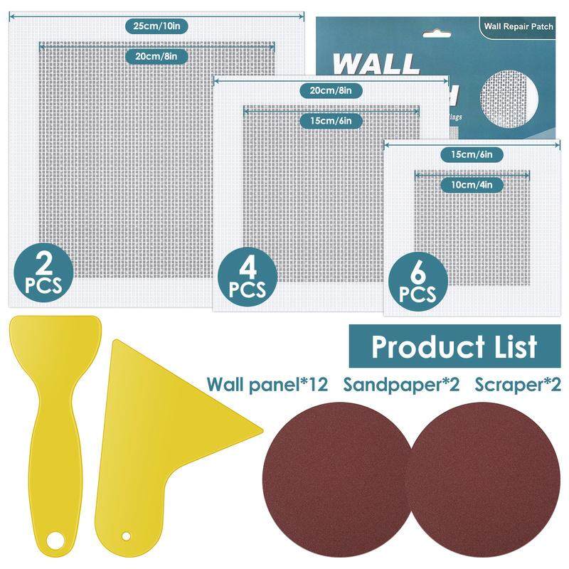 6 x 4 Inch Patch Panels 4 x 6 Inch Patch Panels 2 x 8 Inch Patch Panels 2 x Sandpaper 2 x Different Size Scrapers