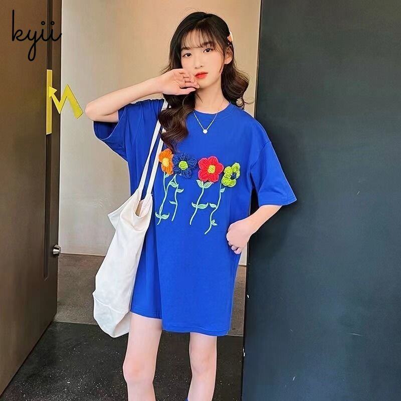 KYII Kids Girls Summer Round-neck Dress Short Sleeve Casual Loose Dress kyii0130