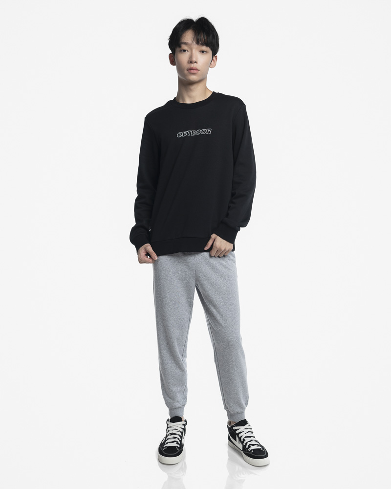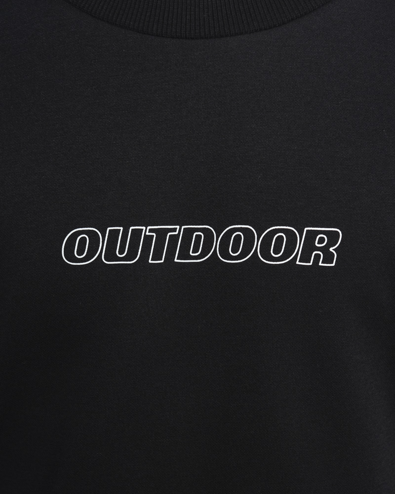 Regular Solid Coloured Long Sleeve Sweatshirt with Round Neck. Comes with Outdoor Slogan text in outline at the front. Made of cotton.