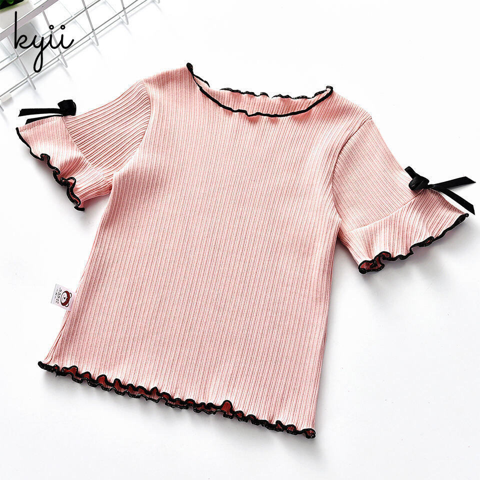 KYII Girls Long Sleeve summer children Cotton Korean Round-neck Top kyii0195