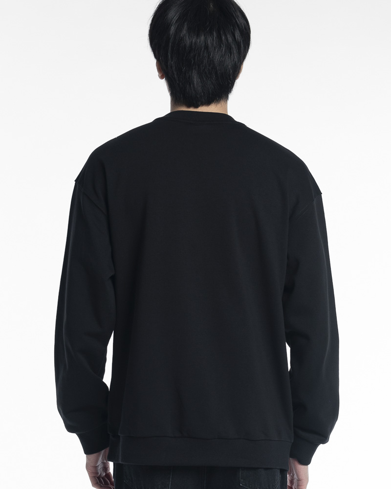 Regular Solid Colour Long Sleeve Sweatshirt with Round Neck. Comes with Green Rubber Bear Patch Embroidery and "Languid Quiet" Slogan Print at the front.