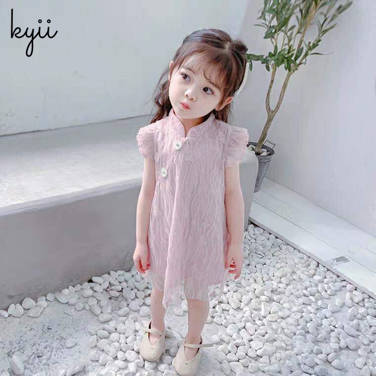 KYII Kids Girls Summer Round-neck Dress Sleeveless Casual Loose Dress kyii0215