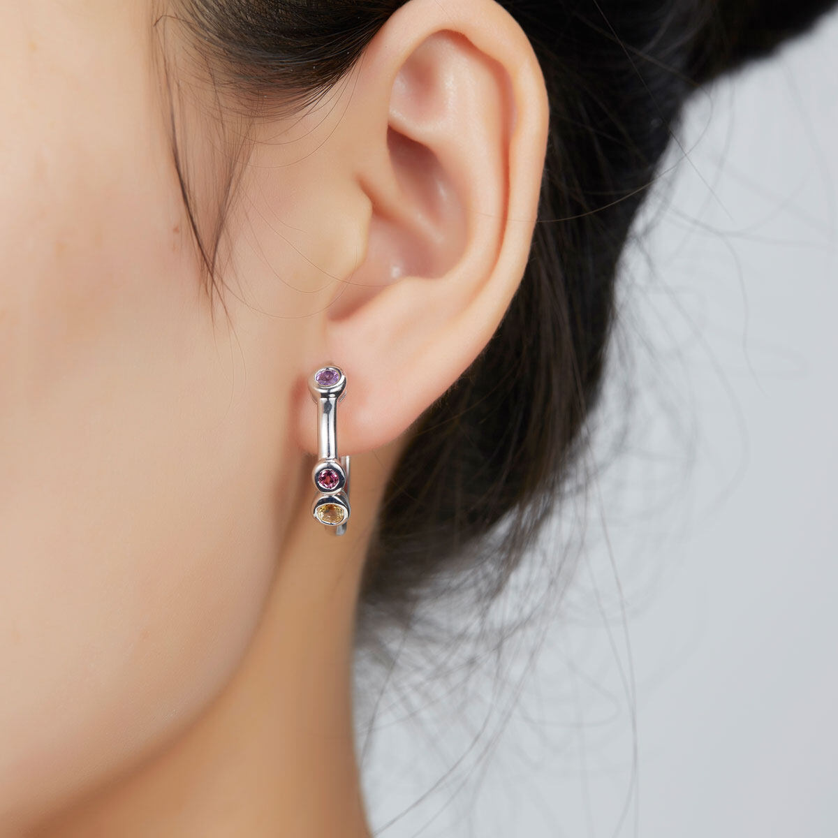 Hoop Huggie Earrings Real 925 Silver for Women Amethyst Citrine Garnet Natural Wedding Jewelry
