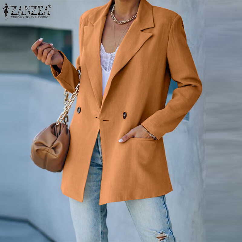 ZANZEA Women Formal Office Long Sleeve Blazer Commute Cotton Double Breasted Suit Coat #15