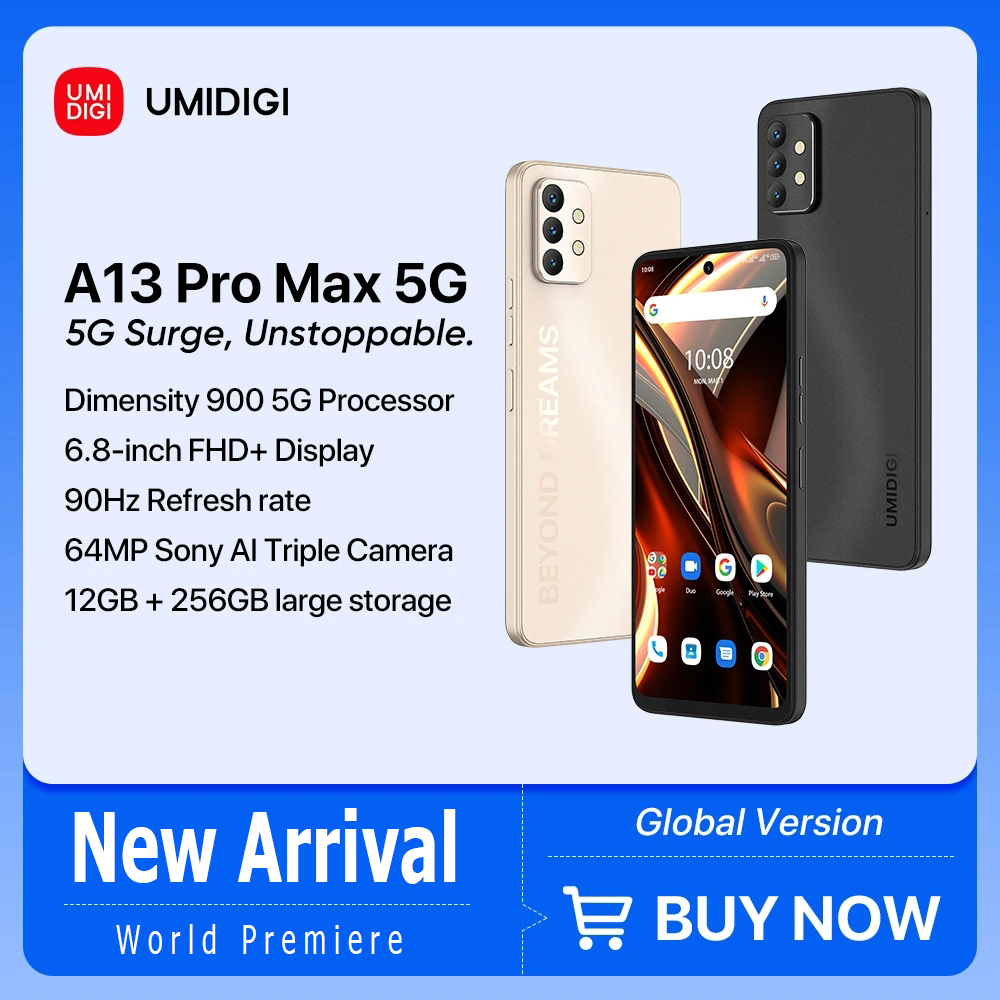 [World Premiere] UMIDIGI A13 Pro Max 5G Smartphone 12GB RAM +256GB ROM Dimensity 900 90Hz 6.8'' FHD+ Display 64MP Triple Camera Cell Phone
