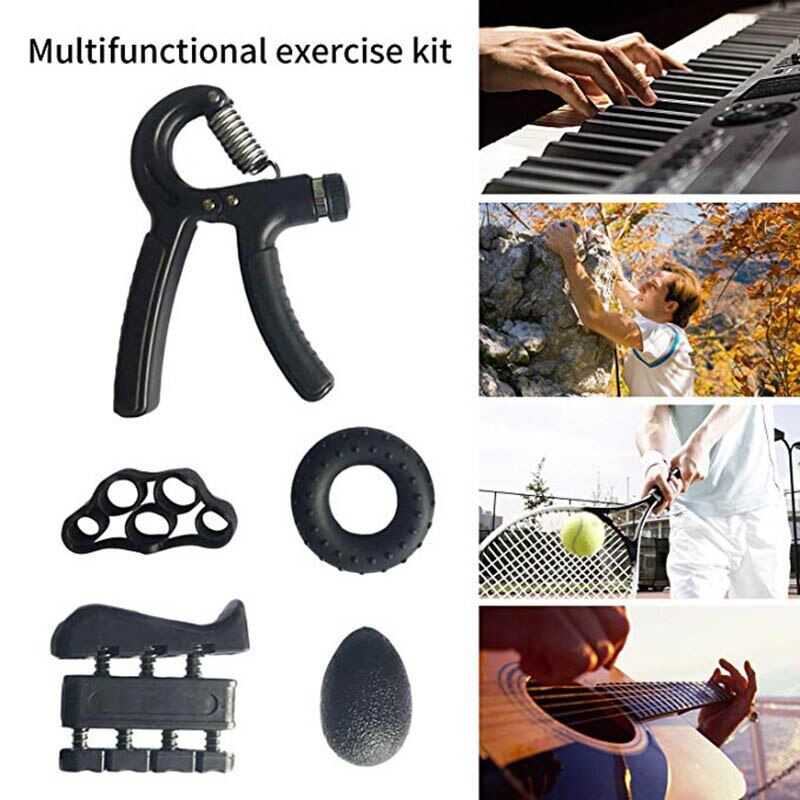 5 Pack Hand Grip Strengthener --Grip Strengthener kit includes adjustable hand gripper, grip silicone ring, five finger exerciser, hand therapy ball, finger stretcher. Suitable for beginners or advanced users to improve the flexibility of fingers and wrists.