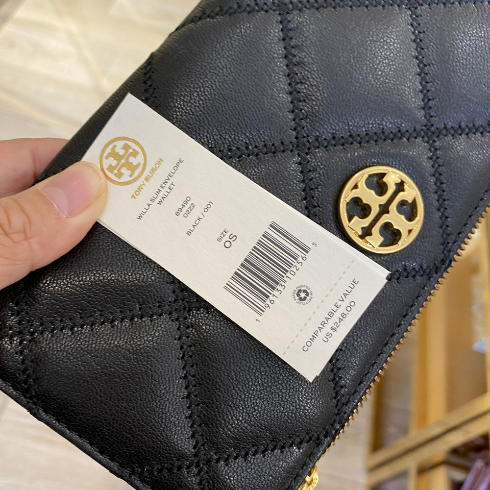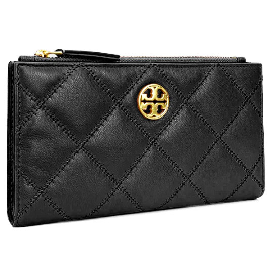 Tory Burch Wallet With Gift Paper Bag Willa Quilted Leather Slim Envelope Wallet Black # 89490
