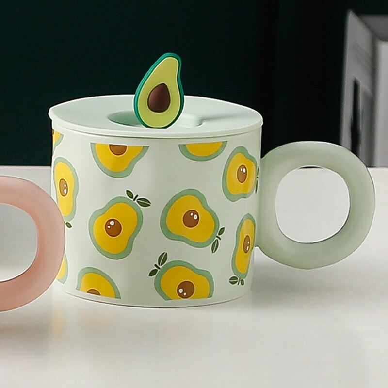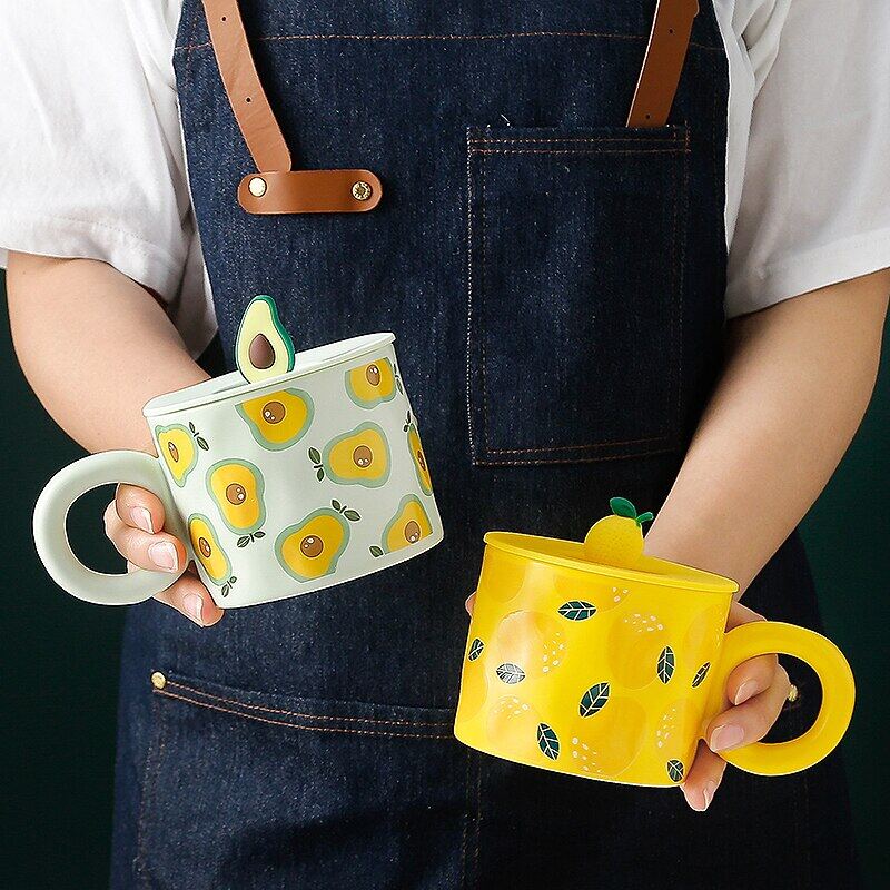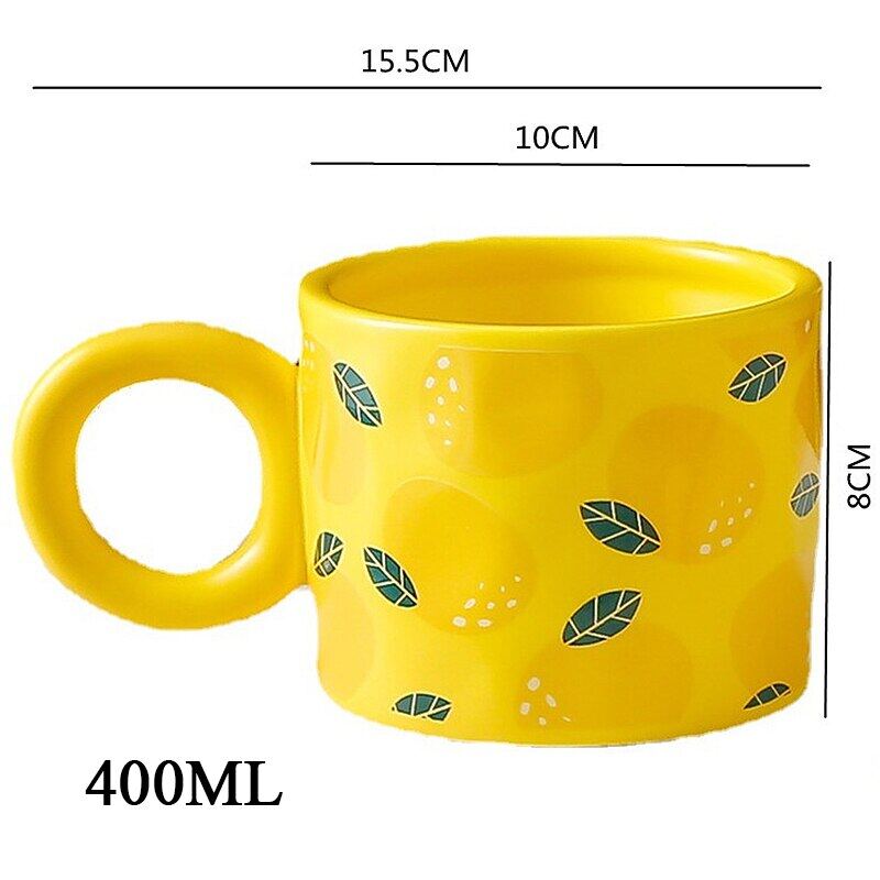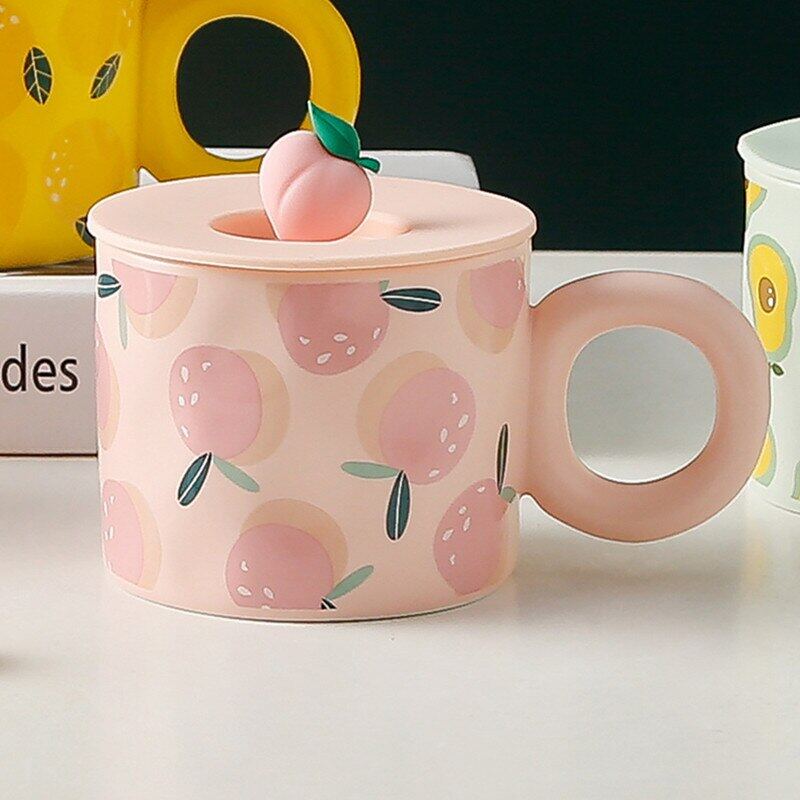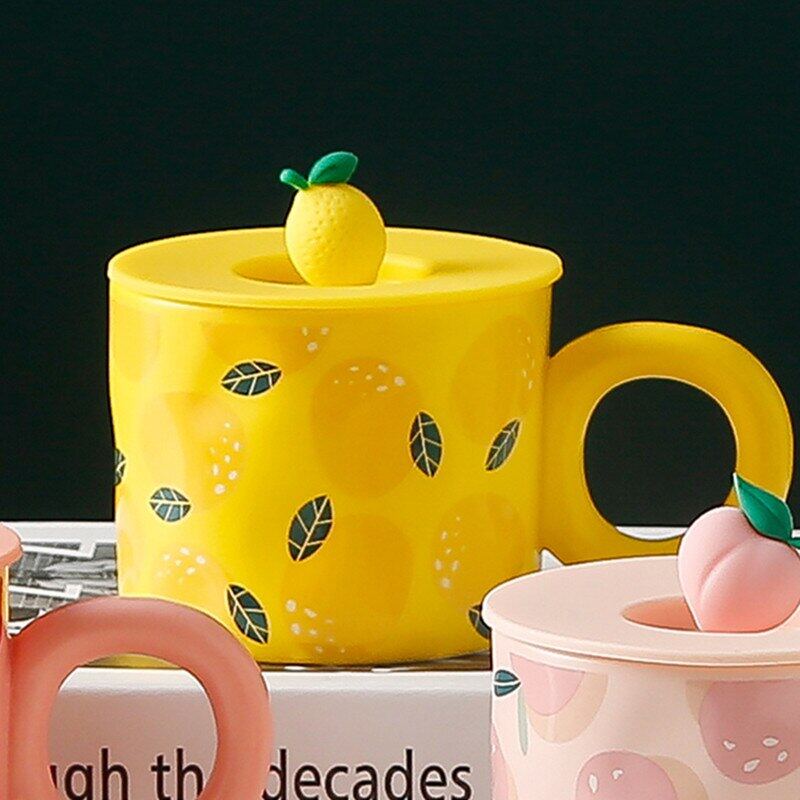 Creative Fruit Shape Mug With Lid Large Capacity Drinking Cup Home Office Ceramic Breakfast Milk Water Juice Cup Couple Gift Hot