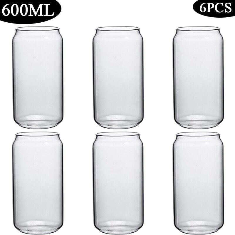 420/600ML 2-6PCS Transparent Glass Cup With Lid Straw Bubble Tea Cup Juice Coffee Beer Can Milk Mocha Breakfast Mug Drinkware