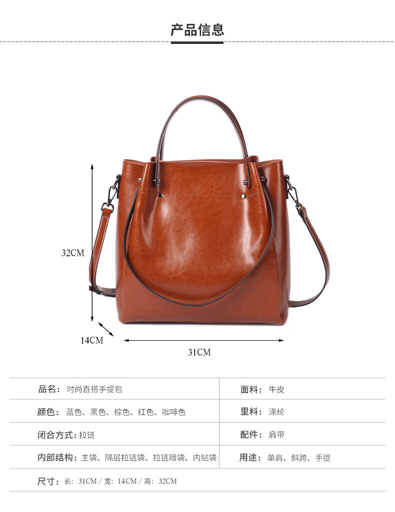 Royal Bagger Handbag For Women Girls Genuine Cow Leather Super Hot Fashion Shoulder Sling Bag High Capacity Top Handle Bags Casual Office Party Outdoor Multi-Function